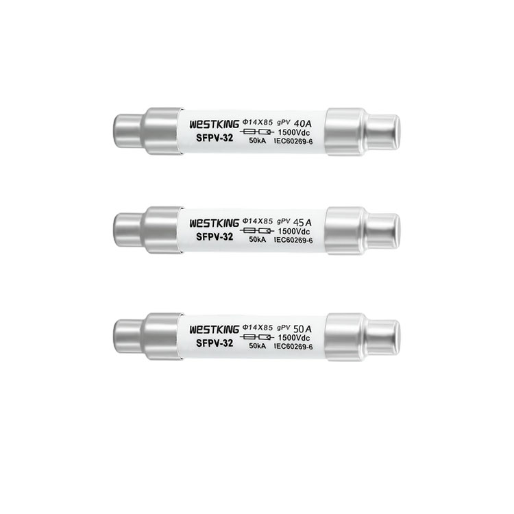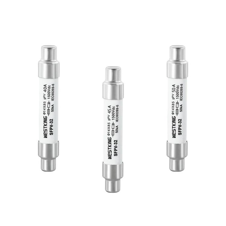 10/14x85mm gPV 1500VDC ఫ్యూజ్ లింక్ పరిచయం10X85mm ఫ్యూజ్ లింక్ల శ్రేణిలో ప్రస్తుత విస్తరణ యొక్క పొడిగింపును సూచిస్తుంది. 50A గరిష్ట రేట్ కరెంట్తో, ఇది అనేక పెద్ద-స్థాయి ఫోటోవోల్టాయిక్ పవర్ ప్లాంట్ల అవసరాలను సమర్థవంతంగా తీరుస్తుంది. అన్ని ఫ్యూజ్ లింక్లు 85mm యొక్క ఏకరీతి పొడవును పంచుకుంటాయి మరియు SFPV-32BX ఫోటోవోల్టాయిక్ బేస్ను ఉపయోగించుకుంటాయి, ఇది ఇప్పటికే ఉన్న 10X85mm సిరీస్తో అతుకులు లేని అనుకూలతను నిర్ధారిస్తుంది.