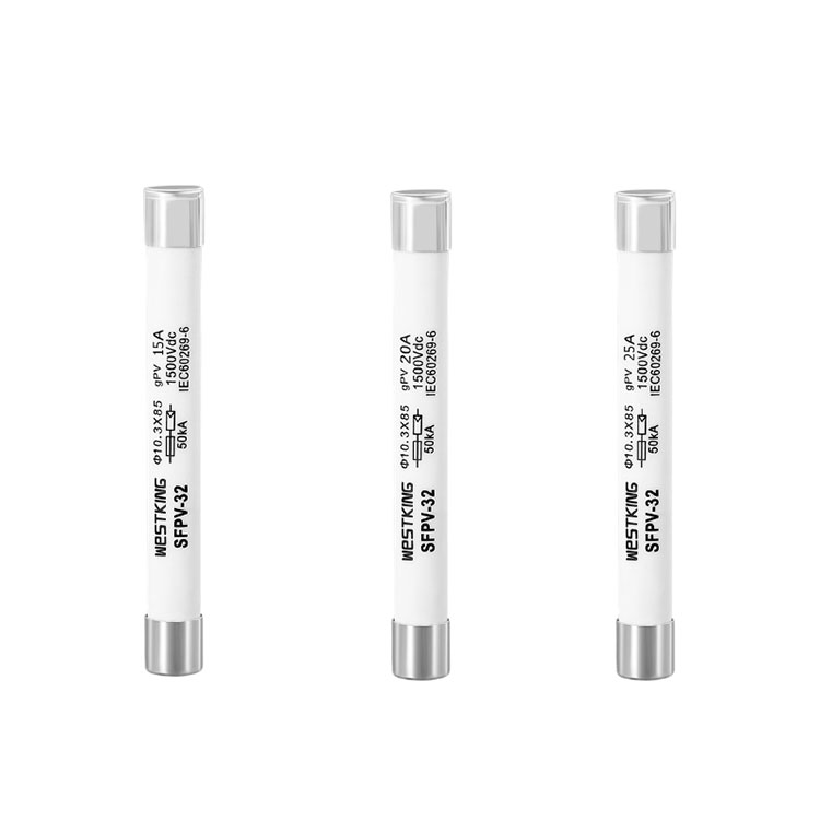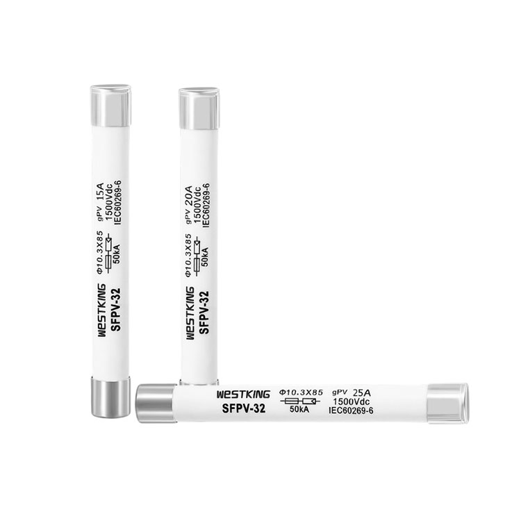 WESTKING యొక్క సోలార్ 10X85mm ఫోటోవోల్టాయిక్ (PV) ఫ్యూజ్ సిరీస్ ప్రత్యేకంగా ఫోటోవోల్టాయిక్ సిస్టమ్ల యొక్క కఠినమైన ఉష్ణోగ్రతలు మరియు ప్రస్తుత చక్రాలను తట్టుకునేలా రూపొందించబడింది. ఈ ఫ్యూజ్లు కఠినమైన సైకిల్ పరీక్షలకు గురయ్యాయి మరియు TUV మరియు CE ధృవీకరణను పొందాయి. రెండు చివర్లలోని మెటల్ టోపీలు వెండి పూతతో చికిత్స చేయబడతాయి మరియు సిరామిక్ భాగాలు అధిక-అల్యూమినా సిరామిక్స్తో తయారు చేయబడతాయి, అధిక వోల్టేజ్ మరియు అధిక ఆర్క్లకు నిరోధకతను నిర్ధారిస్తాయి. ఈ 1500VDC-రేటెడ్ ఫ్యూజ్లు తక్కువ కనిష్ట బ్రేకింగ్ సామర్థ్యం కోసం 1.35 రెట్లు రేట్ చేయబడిన కరెంట్తో రూపొందించబడ్డాయి, ఇది సాధారణ తక్కువ-ఫాల్ట్ కరెంట్ పరిస్థితులలో సురక్షితమైన సర్క్యూట్ అంతరాయాన్ని అనుమతిస్తుంది.